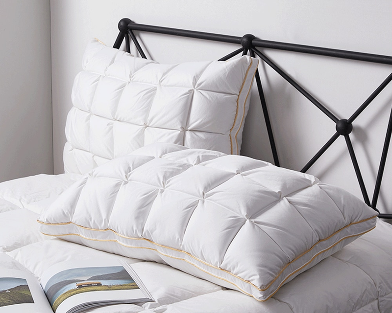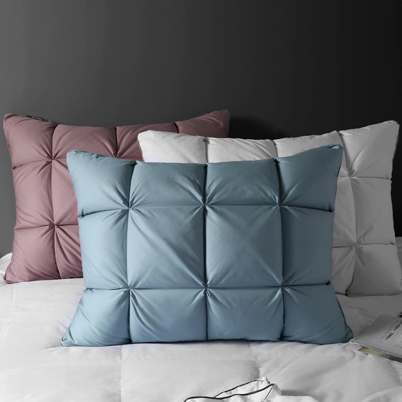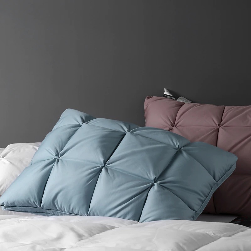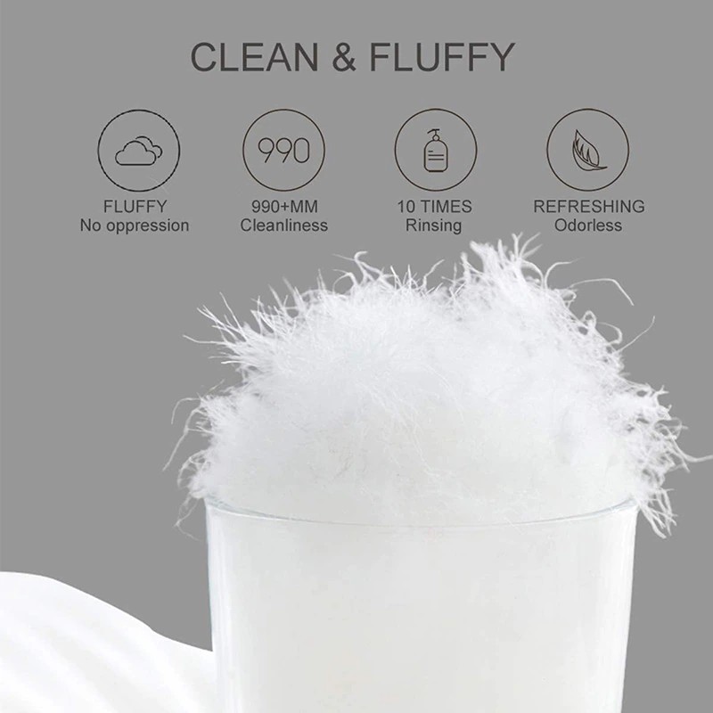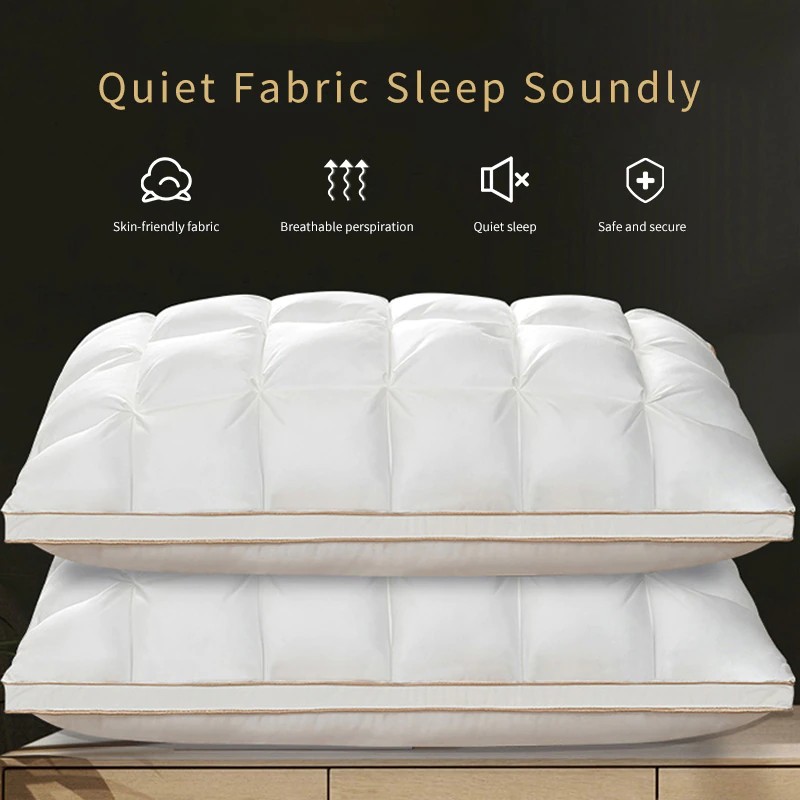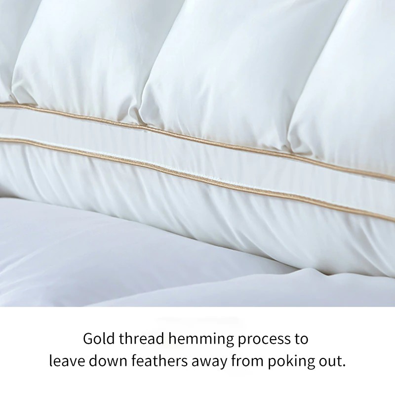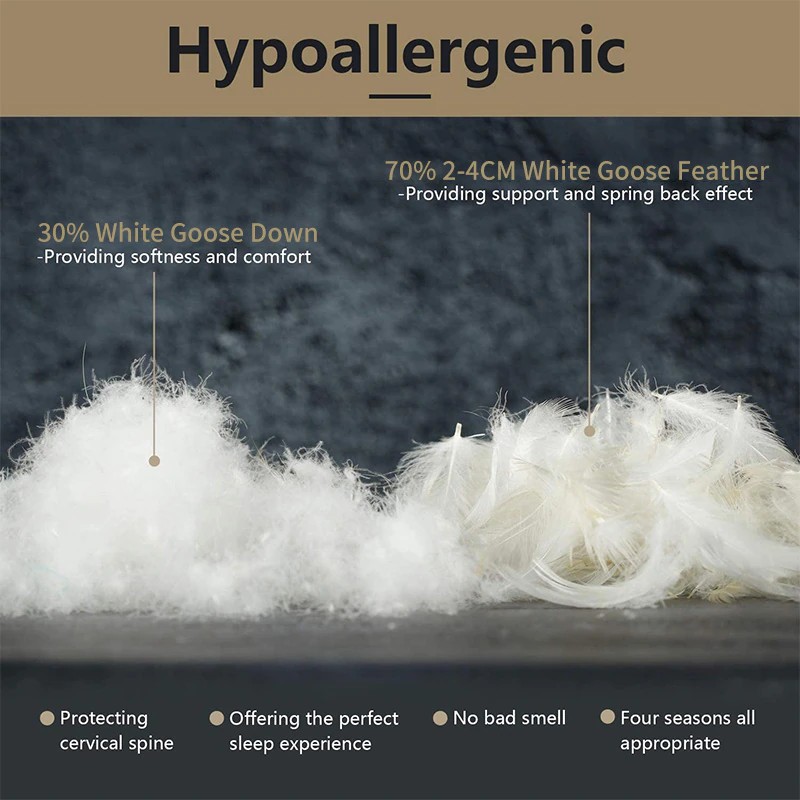 완전한 안락: 우리의 베개는 당신의 머리, 어깨 및 목 지역을 최선 지원을 제공하는 주의깊게 선정된 순수한 백색 거위 아래로 그리고 2-4cm 우수한 백색 거위 깃털로 합니다. 그들은 모든 유형의 슬리퍼를 위해 완벽합니다: 뒤, 측 및 위.