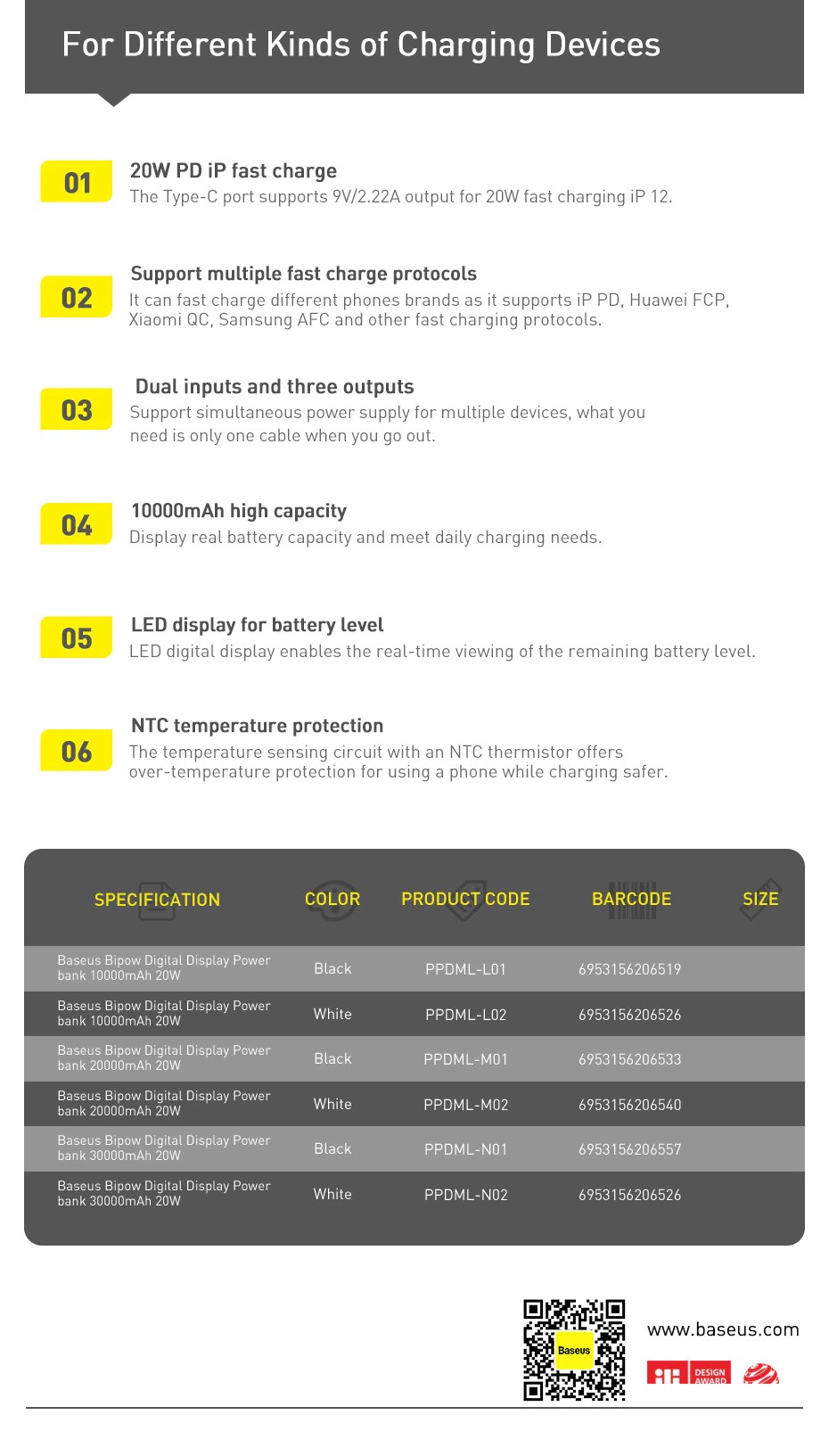 LED 디스플레이가있는 Baseus PD 20W 보조베터리