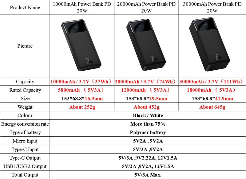 기능 4 : 디지털 디스플레이 PD 전원 은행 30000mAh.
