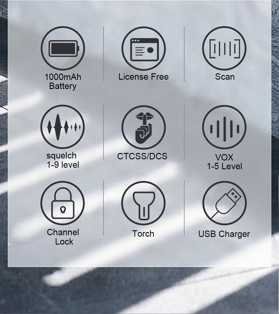 주파수 범위 : PMR 446 또는 FRS 462 + 467 MHz