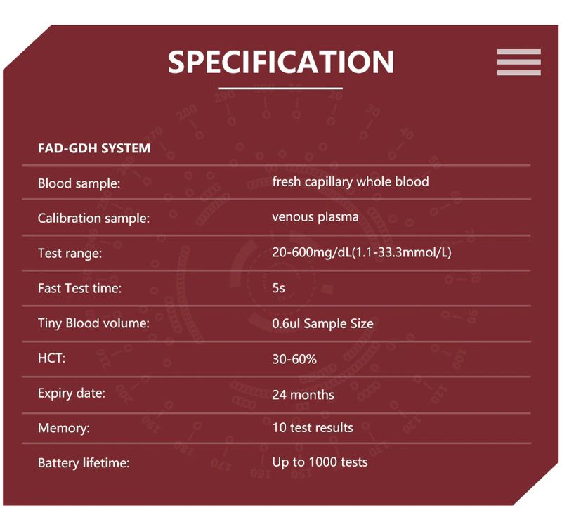 테스트 범위 : 20-600mg / dl & 1.1-33.3mmol / l