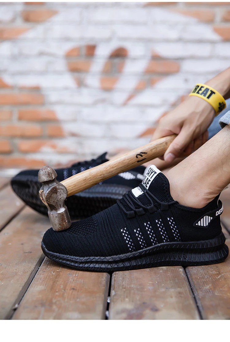 불멸의 안전 작업 신발 남자/여자 패션 Punctureproof 스틸 발가락 신발 경량 통기성 미끄럼 방지 신발 플러스 크기