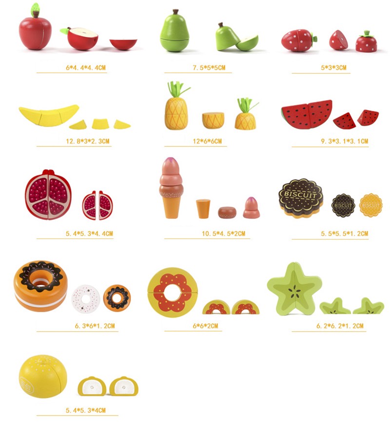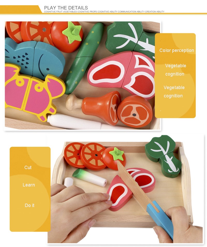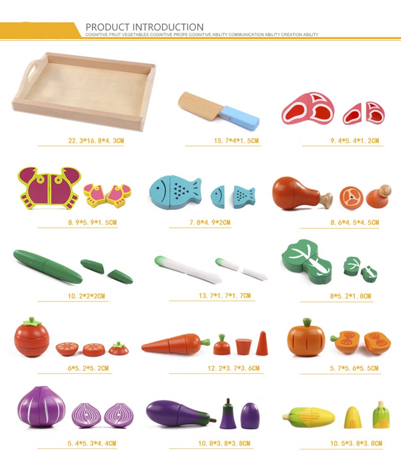 야채와 과일 잘라 재미, 고품질 나무, 비 독성 환경 친화적 인 물 기반 페인트를 사용 하 여, 당신은 어린이 놀고 안심할 수 있습니다. 그것은 아기의 작은 손을 쥐고 능력을 훈련 할 수 있습니다, 아기의 손 눈 조정 개발 촉진, 인식을 개선 하 고 부모-자식 상호 작용을 위한 좋은 장난감입니다. 서둘러 집에 가져가!