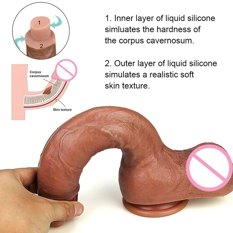 피부 느낌 현실적인 남근 소프트 섹시한 거대한 딜도 라구 딜도 여성 자위대 더블 레이어 실리콘 흡입 컵 딜도 여성을위한 빅 딕