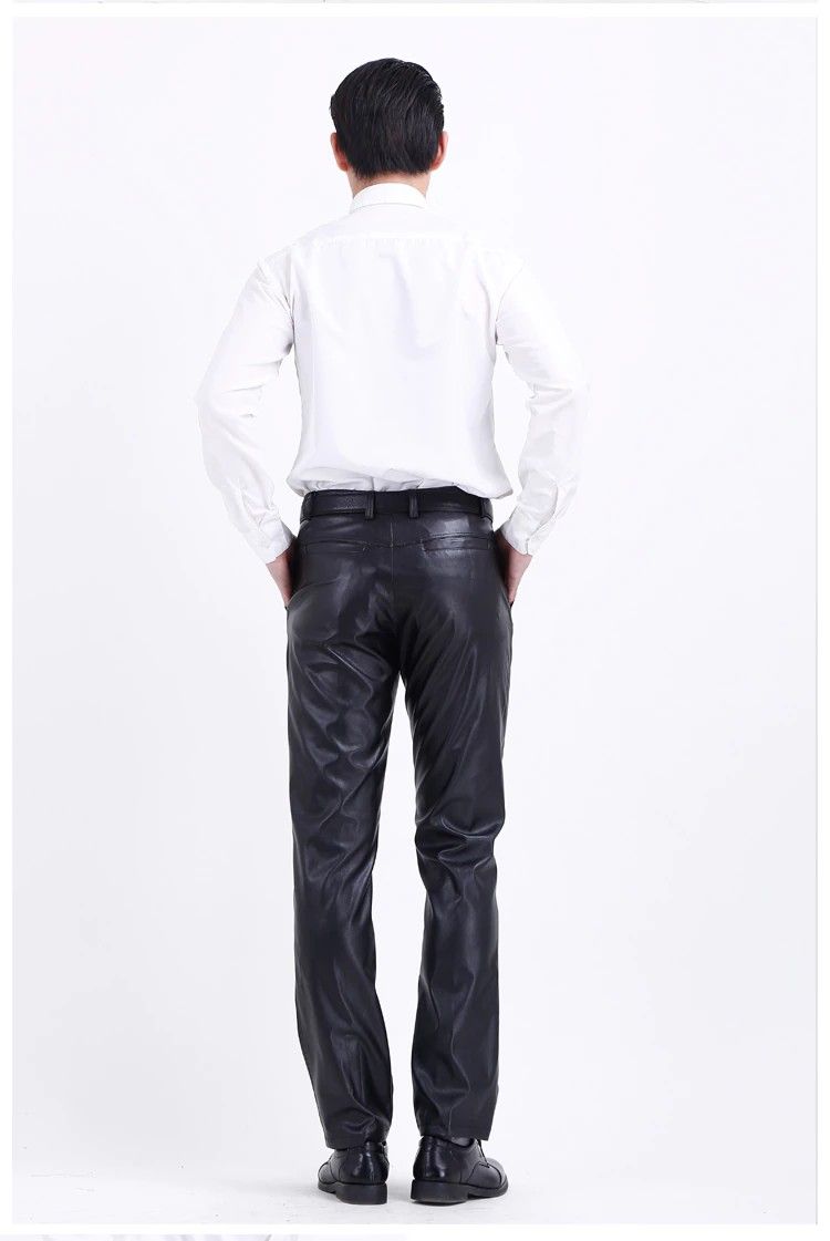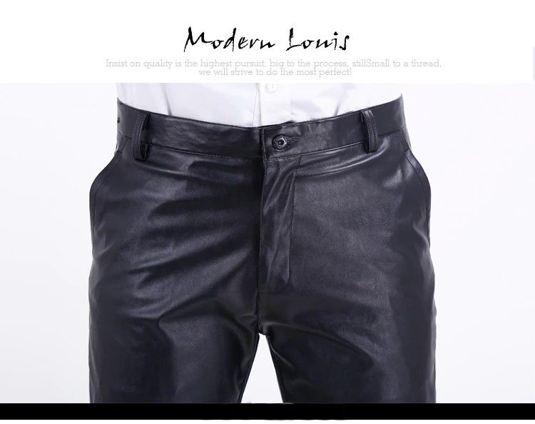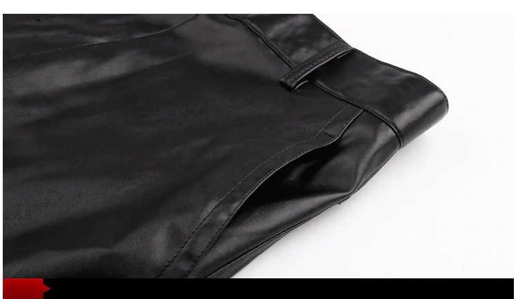 Thoshine 브랜드 여름 남성 가죽 바지 탄성 높은 허리 경량 캐주얼 PU 가죽 바지 얇은 모터 바지 플러스 사이즈