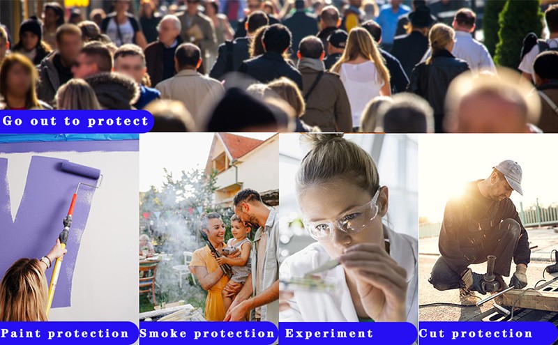 유연하고 힘든: 안티-안개 폴리 카보 네이트 렌즈, 화학 물질, 타액 방울 및 페인트가 눈에 튀는 것을 방지하는 고화질 투명.