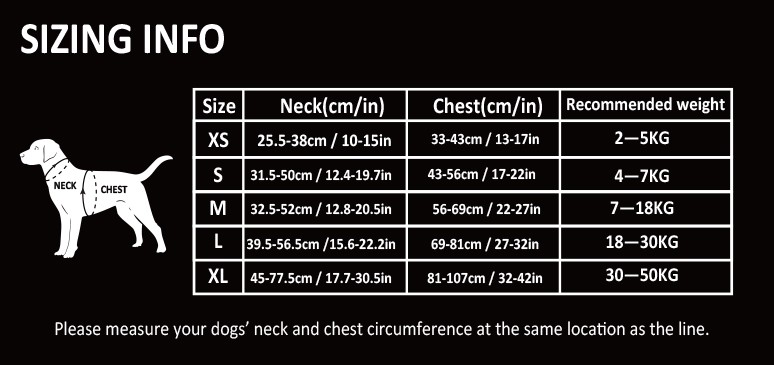 주의 사항: 차트의 크기는 강아지의 크기입니다.다른 측정 방법으로 인해 크기는 2 -3 cm 오류에 존재할 수 있습니다.