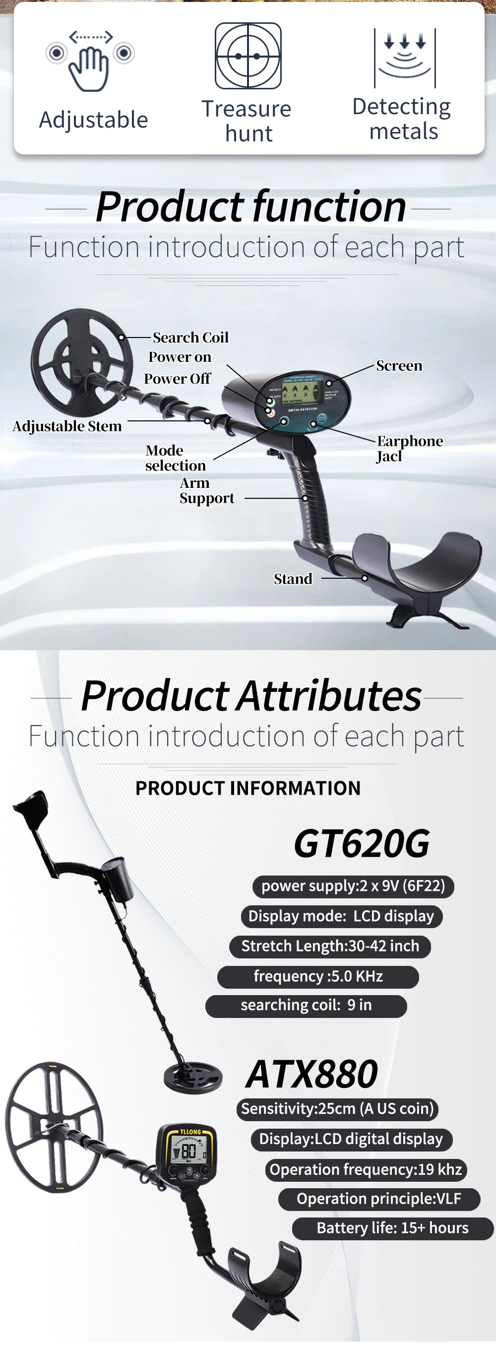 1 、 Widely used-금속 탐지기가 있으면 동전, 문화 유물, 금과은을 어디서나 검색 할 수 있습니다. 이 금속 탐지기는 널리 이용되고 사용하기 쉽습니다.