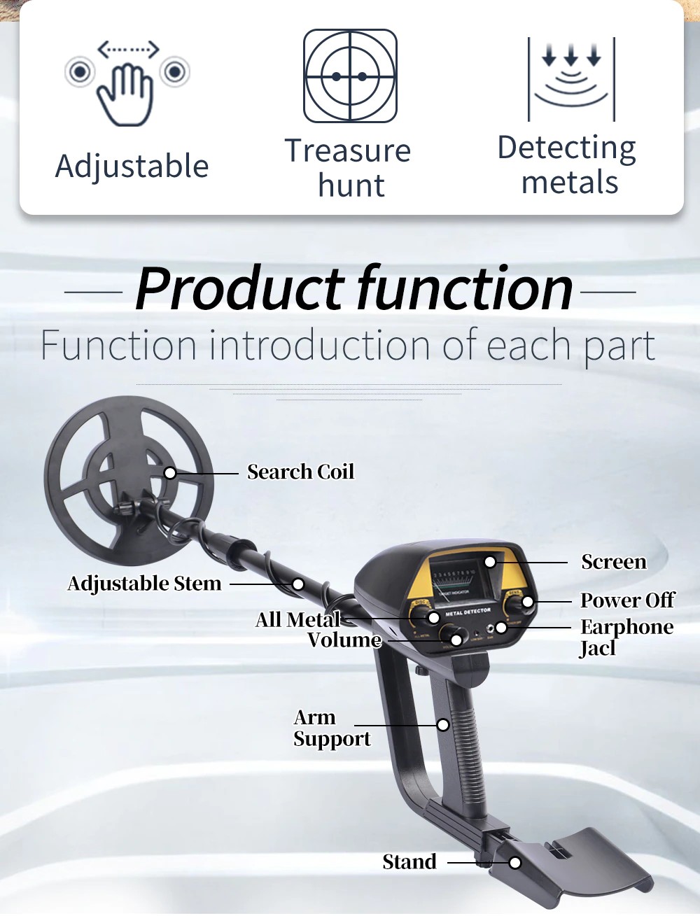 3, 금속 탐지기의 조정 가능한 높이-다른 사람들의 요구 사항을 충족시킬 수 있도록 커넥팅로드 길이를 조정할 수 있습니다.