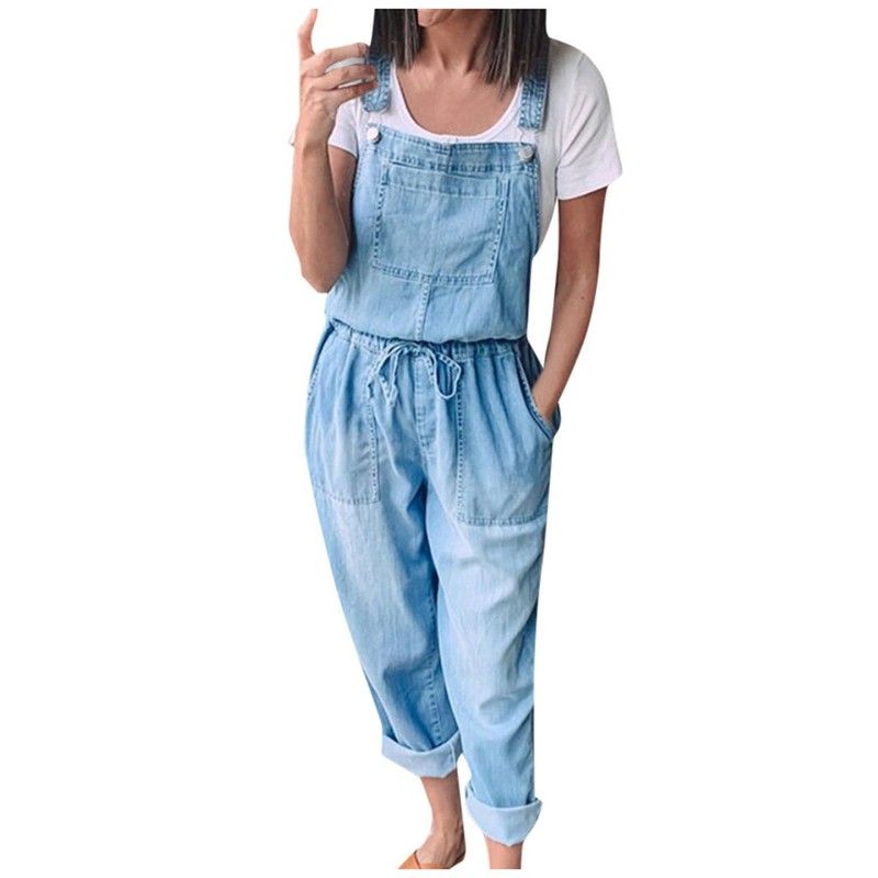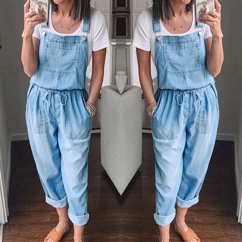 여성 민소매 데님 하이 웨이스트 와이드 플레이 슈트 비치 점프 슈트