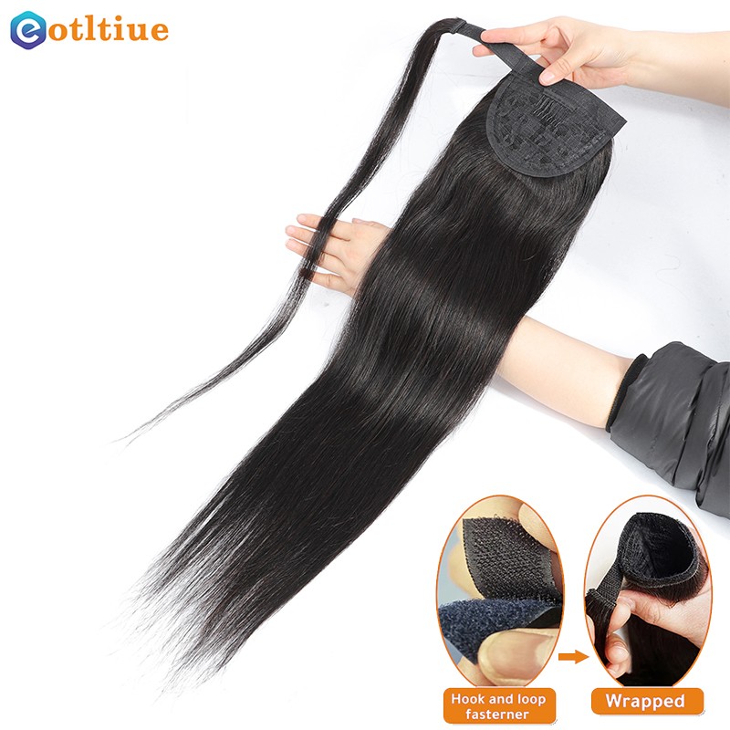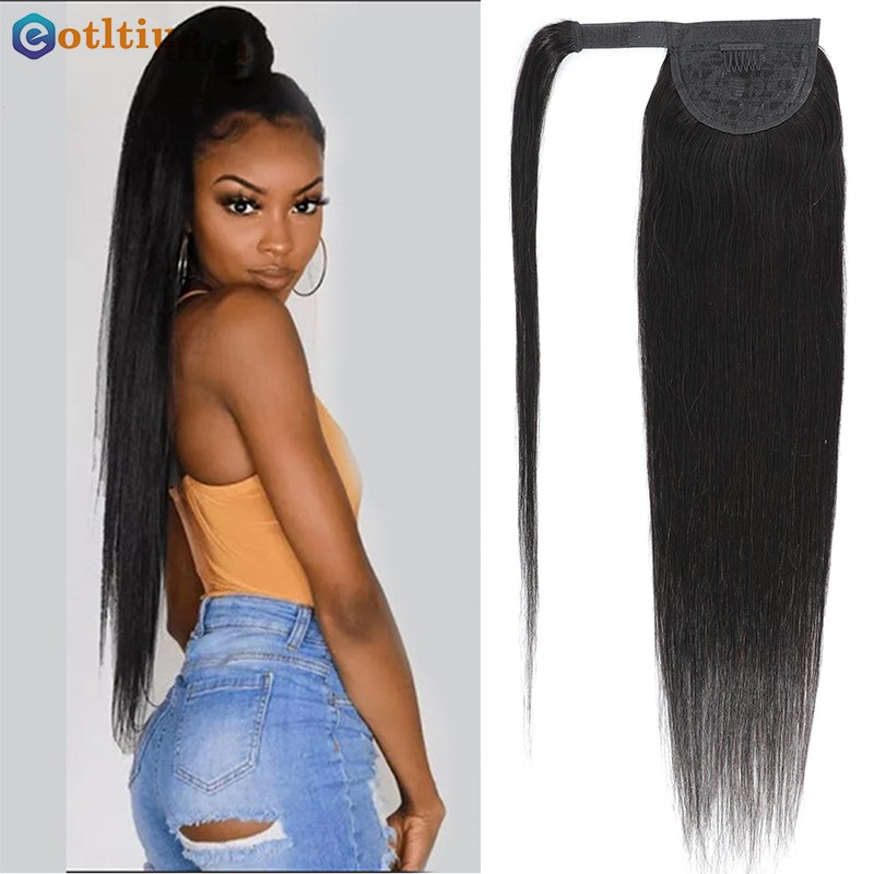 긴 스트레이트 포니 테일 인간 헤어 레미 헤어 익스텐션 랩 말레이시아 헤어 익스텐션 클립 인 자연 컬러 헤어 피스