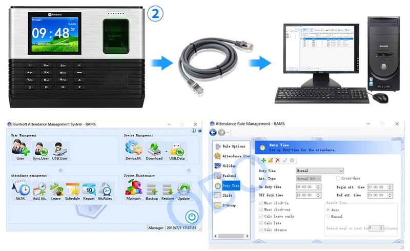 2. 이 장치는 TCP/IP/Wifi 통신 네트워크를 통해 모든 컴퓨터에 연결을 지원하고, 컴퓨터를 한 번에 클릭하여 출석 보고서 데이터를 다운로드합니다.