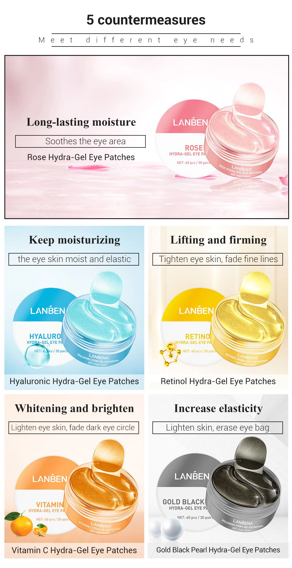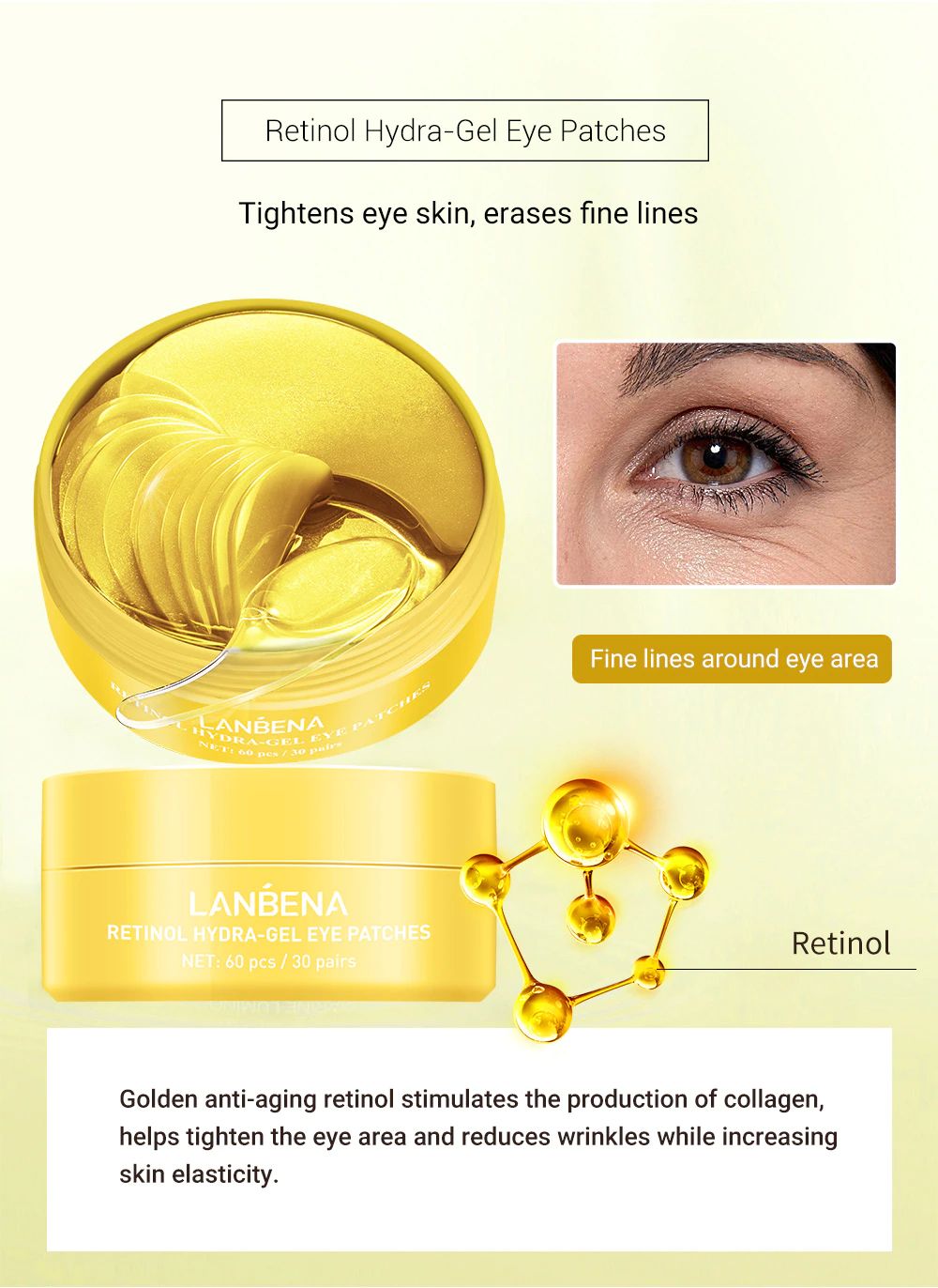 Remendos De Olho De Colágeno Lanbena 60 Pces Sacos Olho Remoção Rugas Círculos Retinol Vc Hialurônico Ácido Olhos Máscara De Sono Rosto Cuidados Com A Pele
