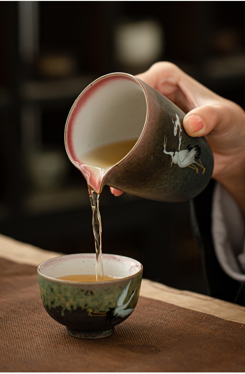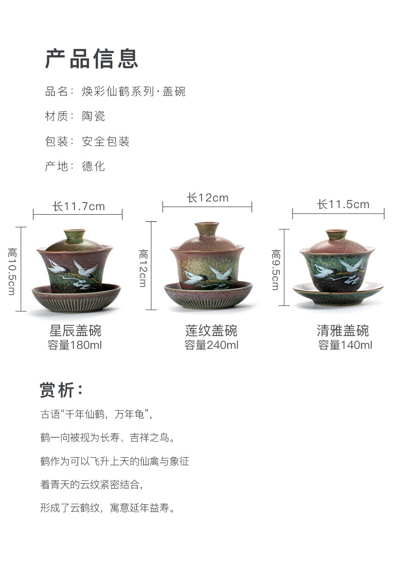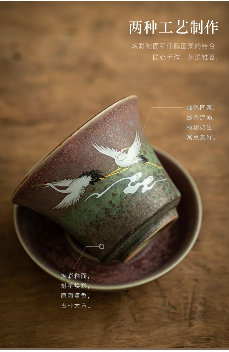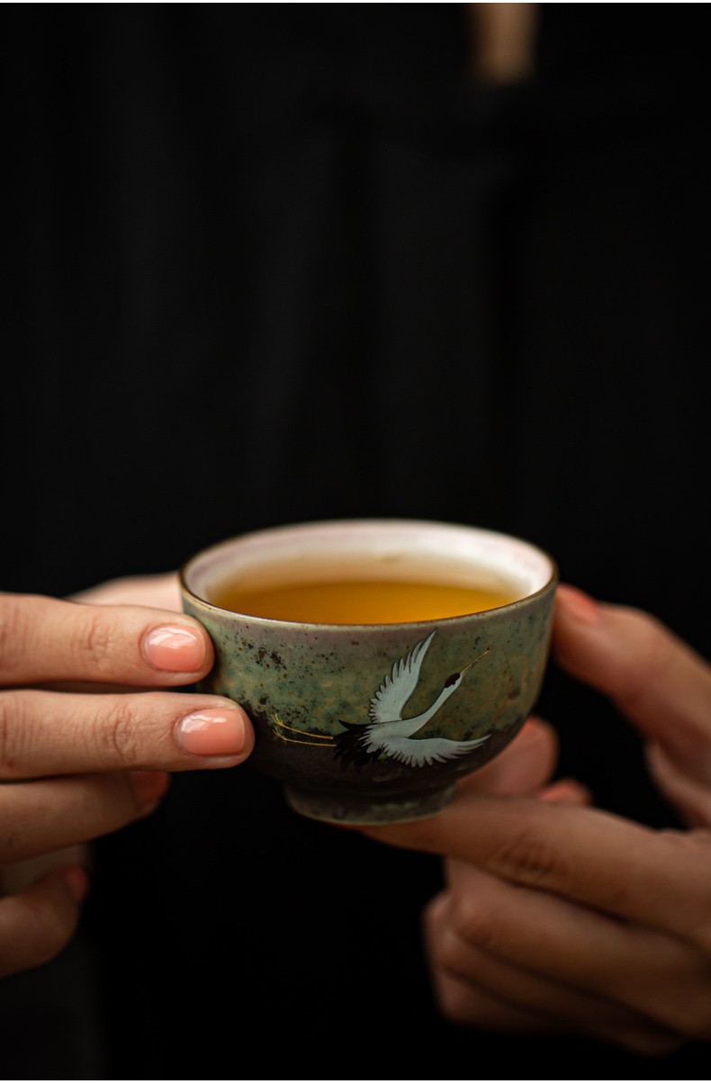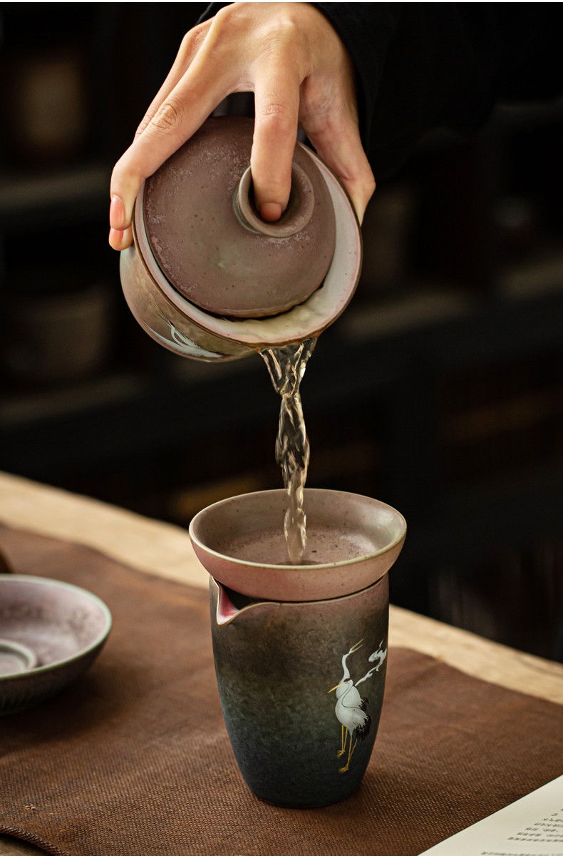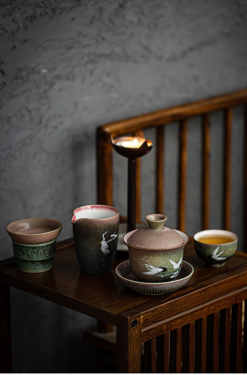 Cuenco De Cerámica Con Tapa Para Té, Cuenco Retro Grande Antiquemaduras Con Cubierta De Grúa Brillante Pintada A Mano, Sancai Gaiwan