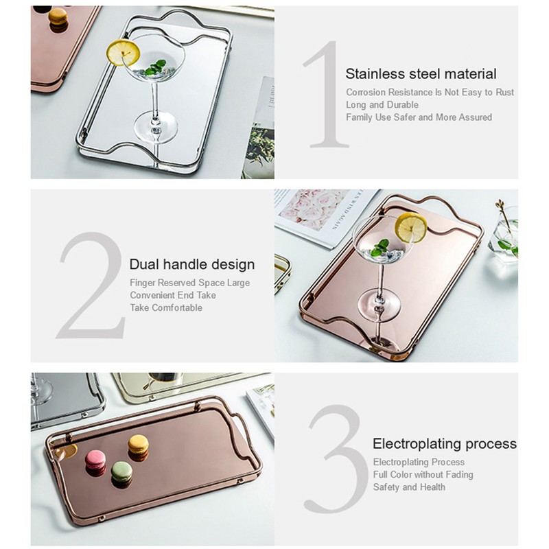 - أنيقة وأنيقة رائعة عاكسة الانتهاء من جودة الفولاذ المقاوم للصدأ والحرفية غرامة ، كبيرة لتقديم المشروبات ، وتقديم المقبلات أو عرض الأشياء المفضلة أو العطور ، كولونيا ، تقديم وجبة الإفطار ، وتقديم النبيذ مع النظارات ، للحفلات والمناسبات ، والحصول على معا ، حفلة موسيقية.