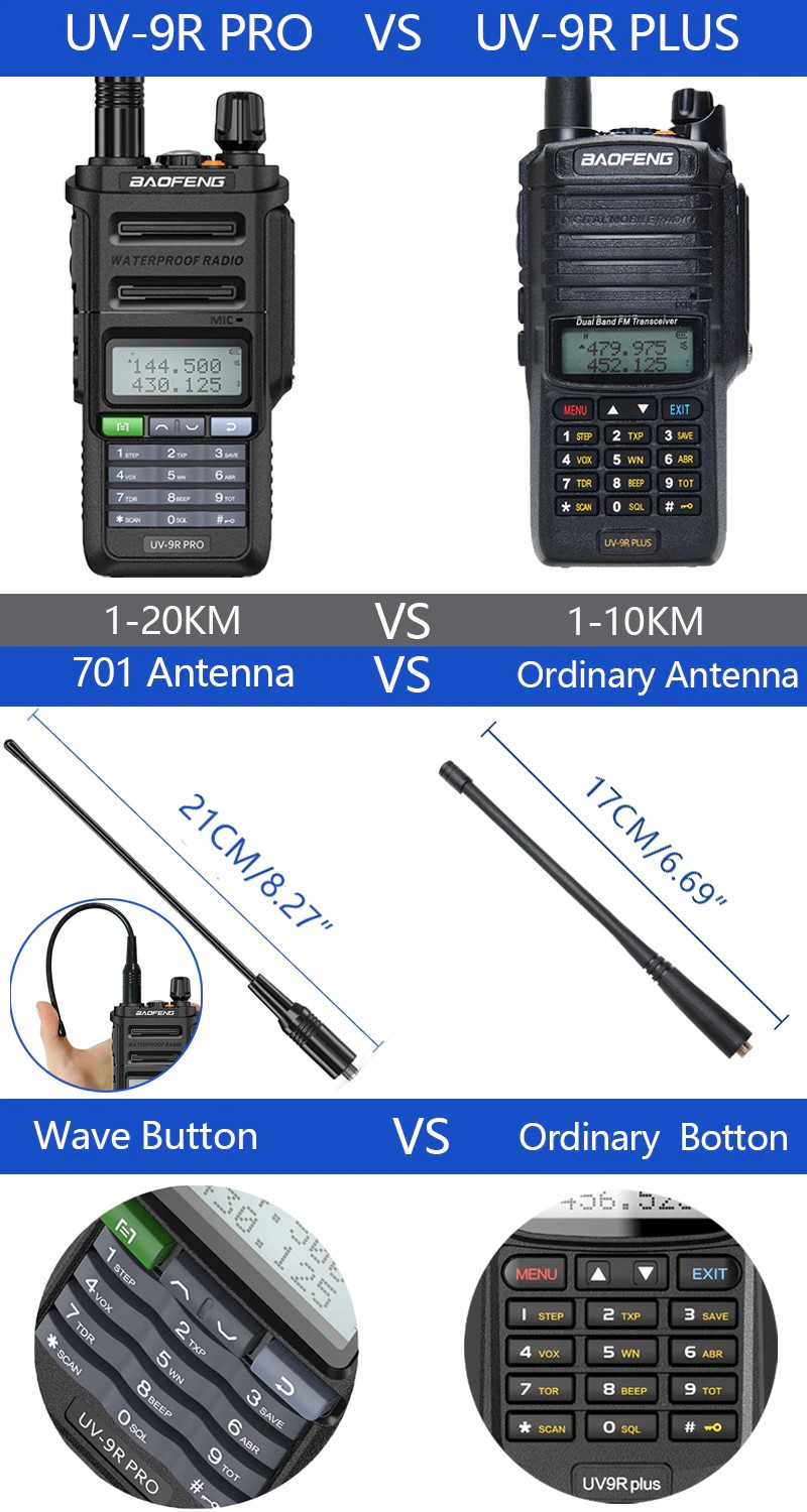 En sonuncu Baofeng Uv-9R Pro Su Geçirmez Ip68 Walkie Talkie Yüksek Güç Cb Ham 30-50 Km Uzun Menzilli Yükseltme Uv-9R Artı Iki Yönlü Telsiz