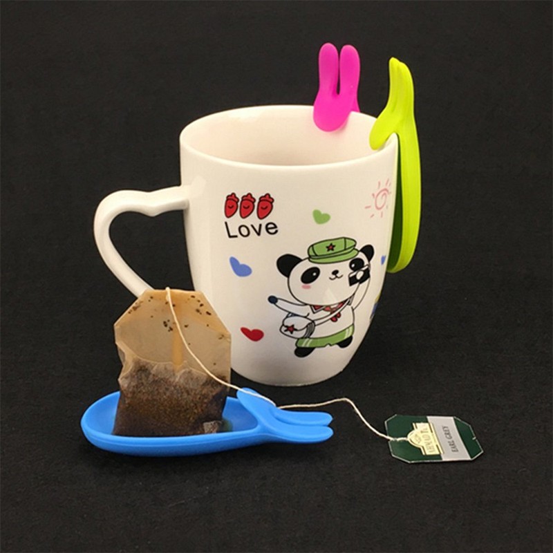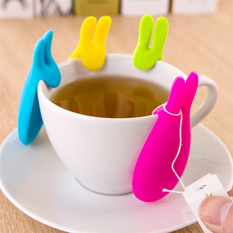 Mais recentes Quente Novo 1 Pçs Bonito Coelho Saco De Chá Titular Bonito Silicone Copo Caneca Ferramenta Pendurado Presente Café Chá Colher Titular