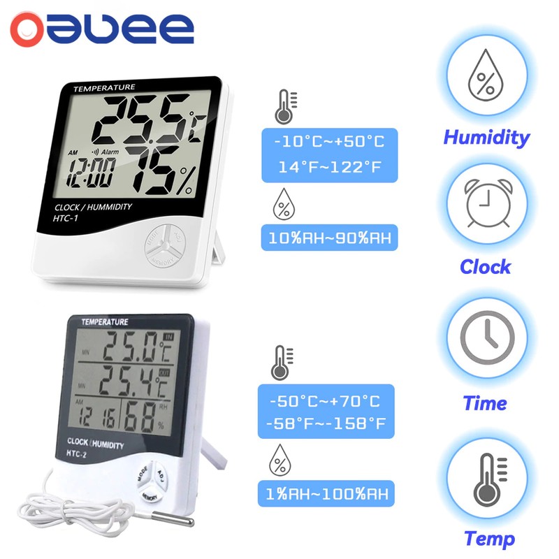 Oauee Lcd Eletrônico Digital Medidor De Umidade Temperatura Ao Ar Livre Indoor Termômetro Higrômetro Estação Meteorológica Relógio Htc-1 Htc-2