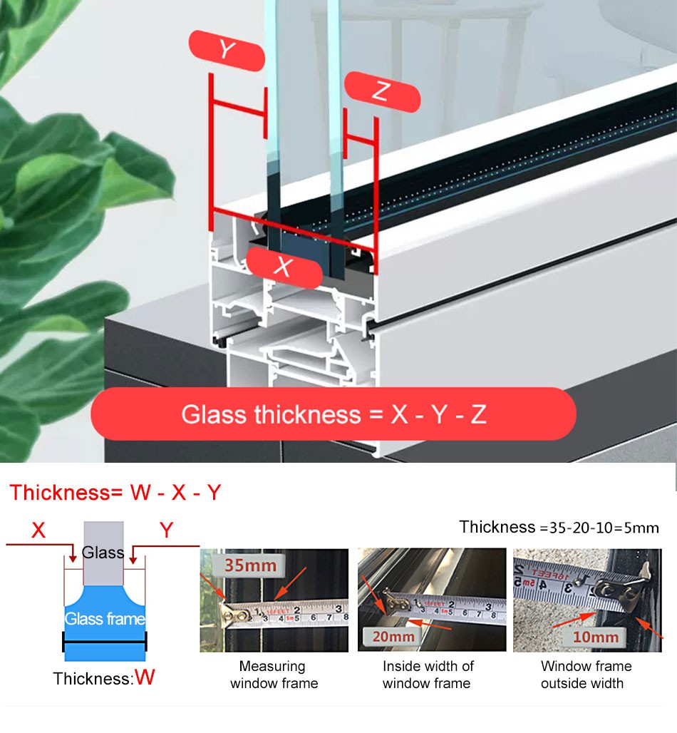 Glass thickness =X Width- Y width - Z width