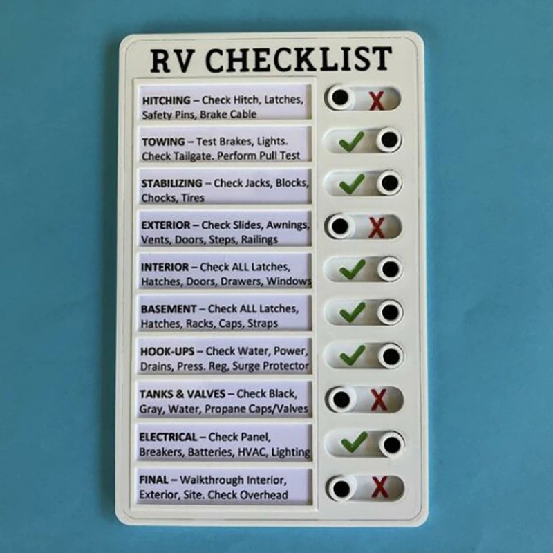✅Эта моя работа предоставляет важные напоминания, которые вы должны проверить, когда вы готовы подключиться или отключиться от RV. Поставляется со списком элементов, как показано на.
