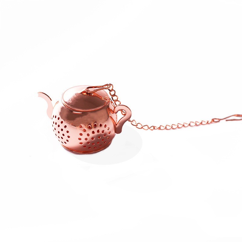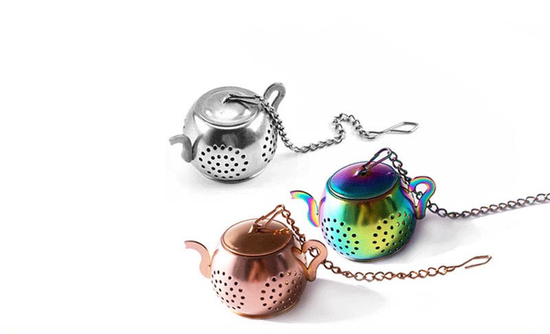 Metal Tea Strainer Teapot Shape Loose Tea Infuser Stainless Steel Leaf Tea Maker Strainer Chain Drip Tray Herbal Spice Filter