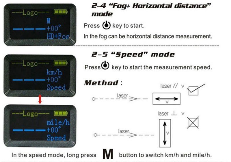 Meetbereik: 5 tot 1200 meter, 1m nauwkeurigheid