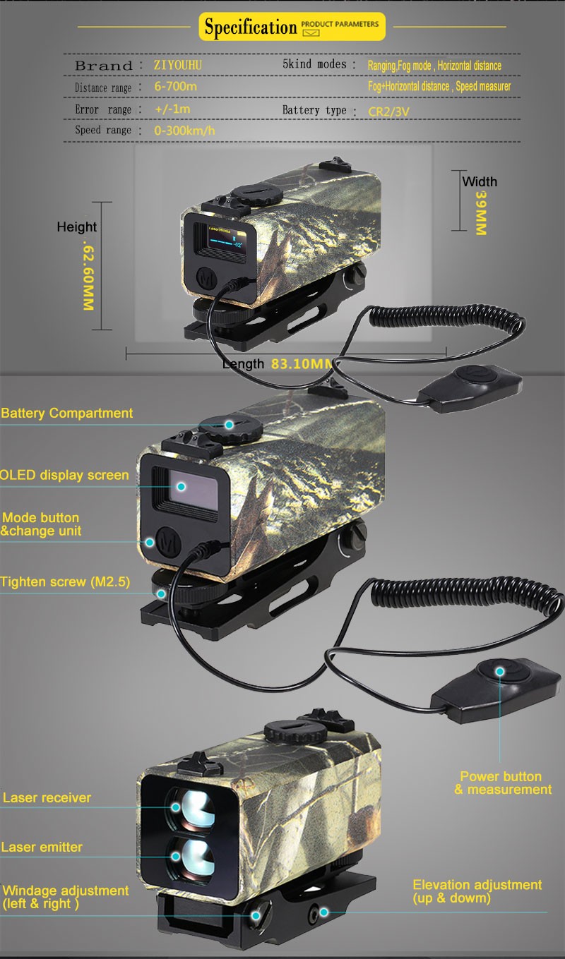 ZIYOUHU Mini Laser Range Finder Mount op Rifle Afstandsmeter voor Outdoor Hunting Schieten Afstand Snelheid Measurer Real-time