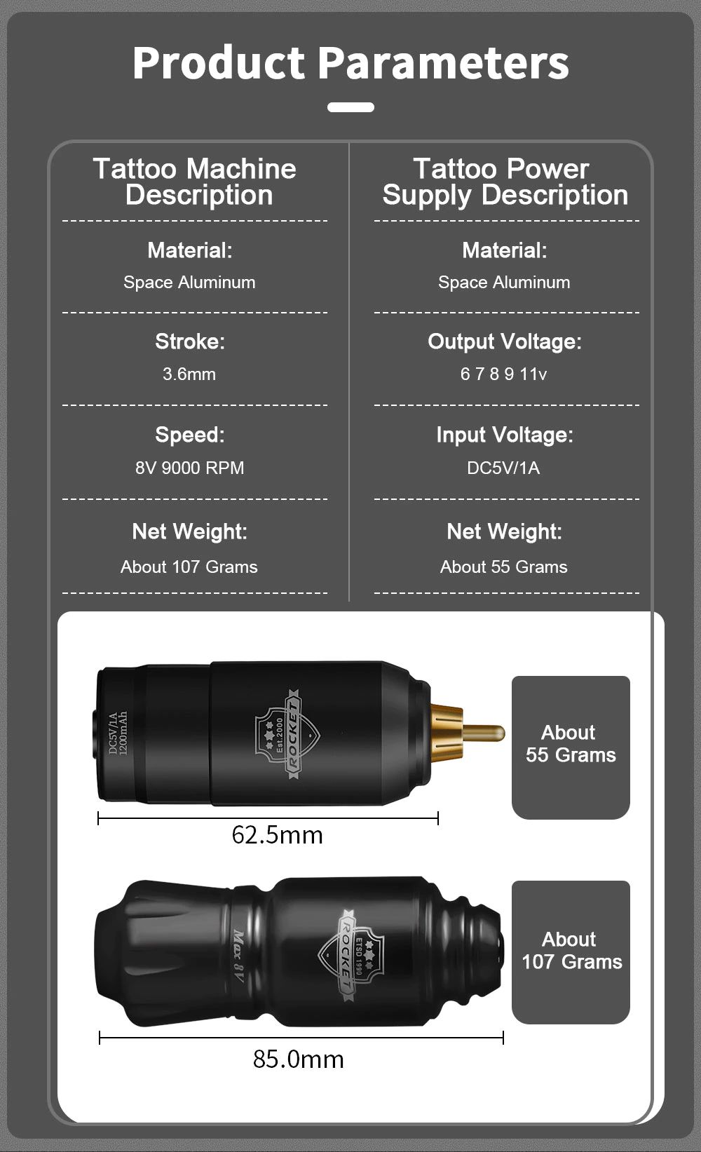 1. Nome di prodotto: Rocket macchina del tatuaggio
