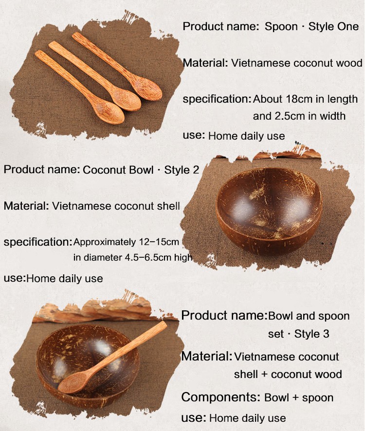 • 천연 코코넛 그릇 숟가락 세트, 과일 샐러드 국수 밥 그릇 나무 식기 크리에이티브 코코넛 껍질 그릇 주방 세트 식기