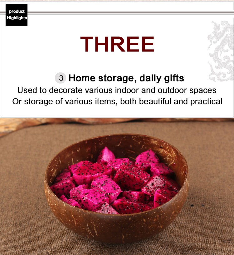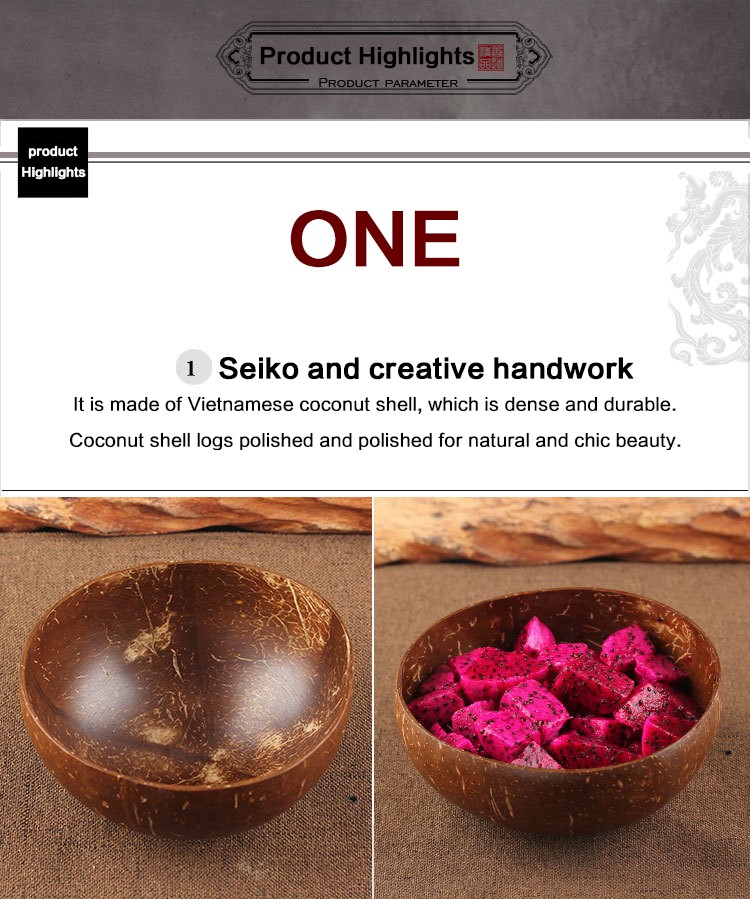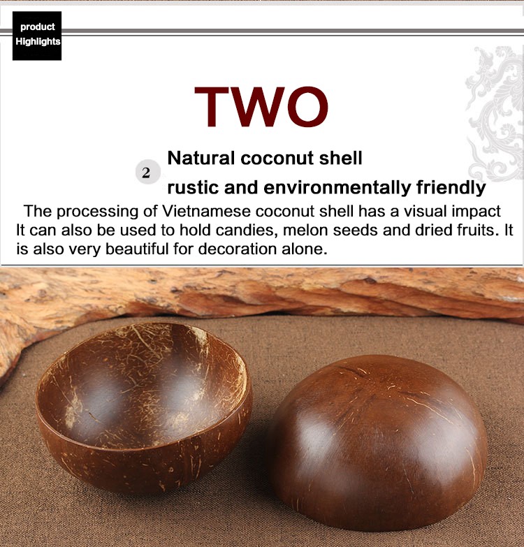 2. 고기와 물이 코코넛 껍질에서 추출한 후, 코코넛 오일로 씻어서 밀봉되어 유해한 래커, 실란트 또는 접착제가 없다는 것을 의미합니다.