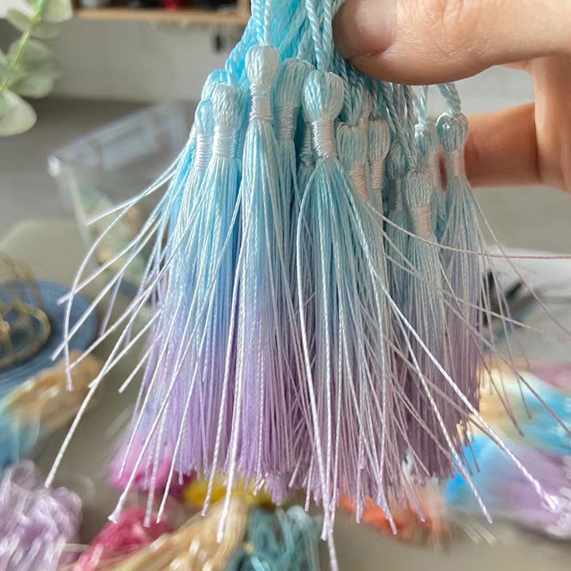 Neue Farbverlauf 13Cm Quasten Für Handwerk Polyester Seide Quaste Fringe Handwerk Schmuck Diy Nähen Kleidung Anhänger Decor Lesezeichen