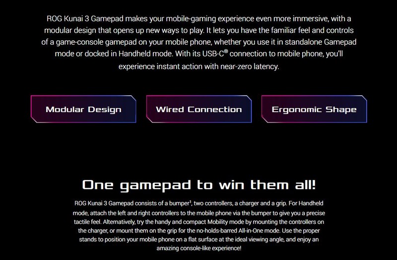 يمكن توصيل جهاز ROG Kunai 3 Gamepad مباشرة بهاتفك المحمول عبر USB-C السلكية®الاتصال ، للعمل الفوري والألعاب فائقة الاستجابة في جميع الأوقات.