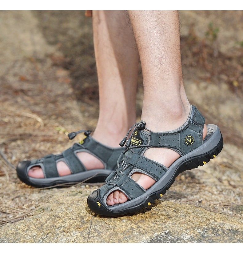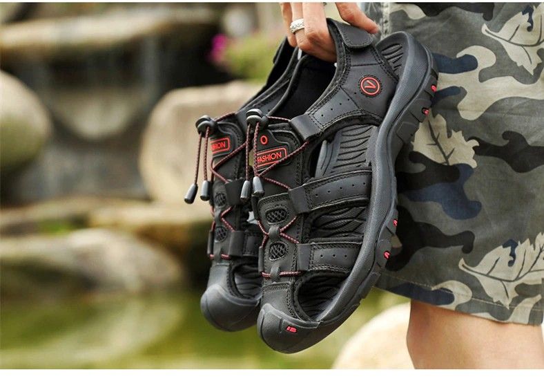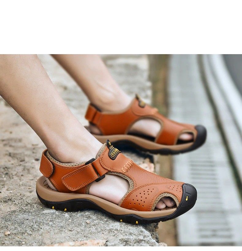 en yeni Hakiki Deri Erkek Ayakkabısı Yaz Yeni Büyük Oğlan Erkek Sandalet Erkek Sandalet Moda Sandalet Terlik Büyük Oğlan 38-47