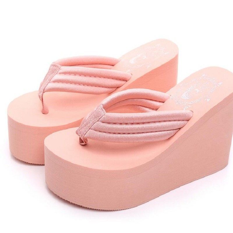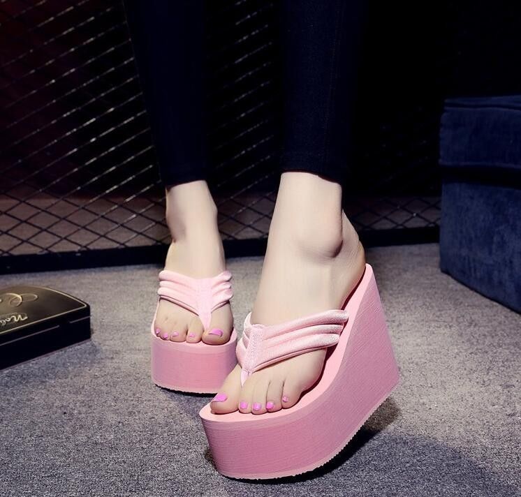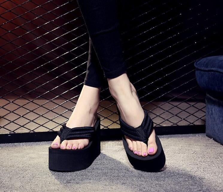 Newest New Arrival Women Chunky Sandals High Heels Wedges Flip Flops Lady Pure Color Water Taiwan Summer Shoes Plus Size 40 41