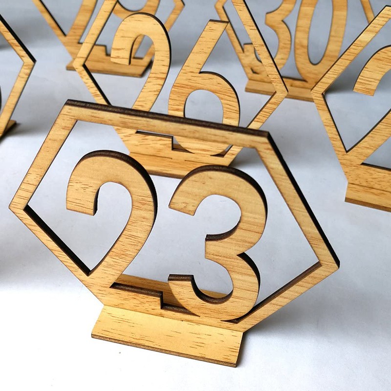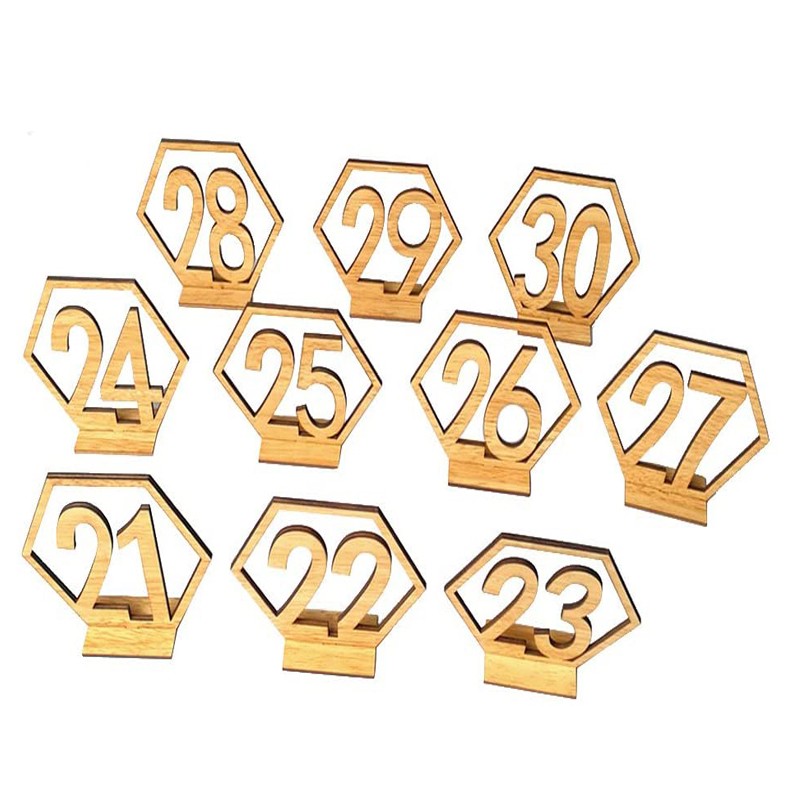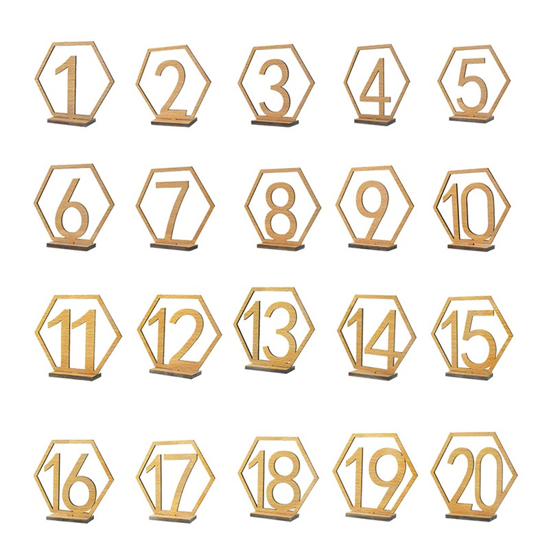 1-40 Houten Tafel Nummers Hexagon Vorm Met Houder Base Voor Bruiloft Evenementen Catering Decor Supplies