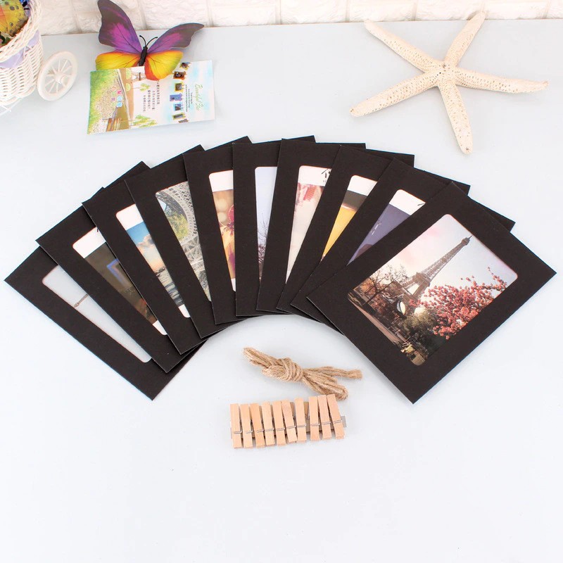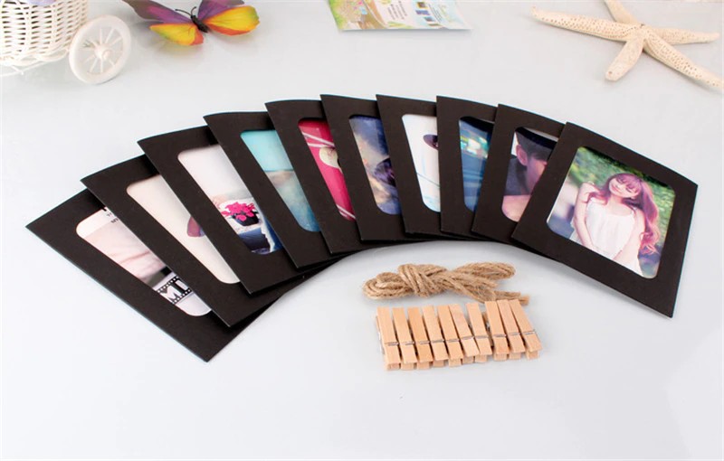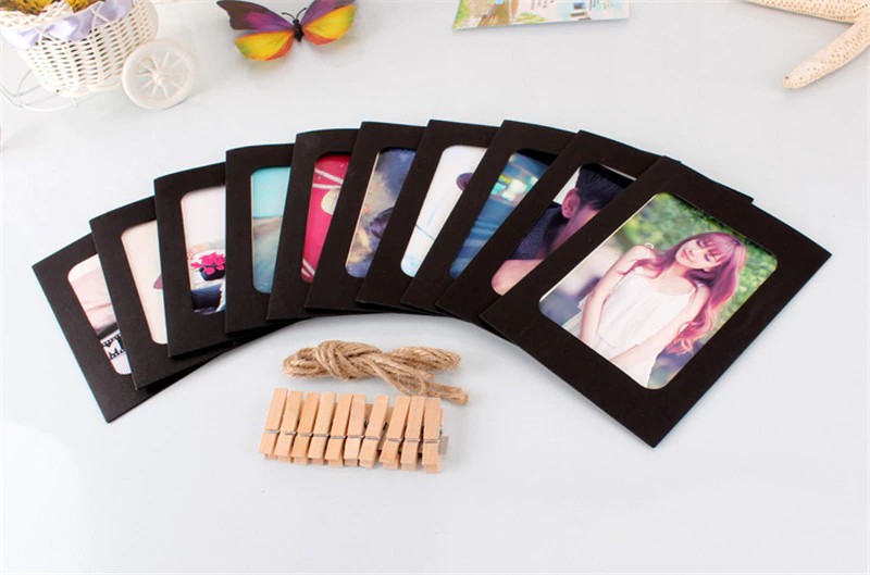 10 Pcs Combinatie Papier Frame Met Clips Diy Kraftpapier Fotolijst Opknoping Muur Foto Album 2M Touw Thuis Decoratie Craft