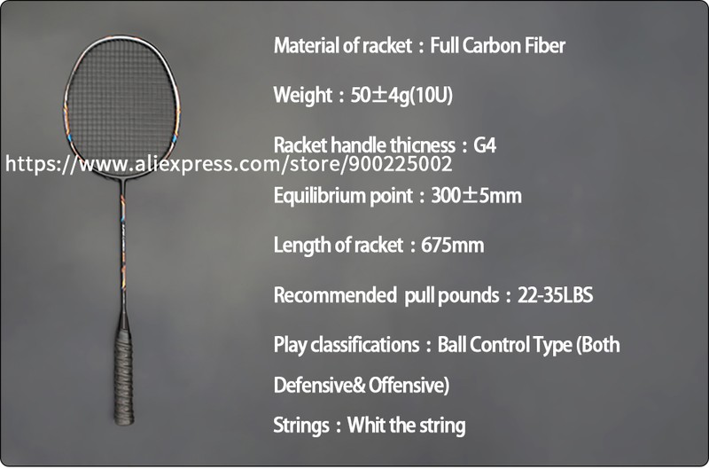 Gewicht-10U Netto gewicht slechts 50-54g zonder string & overgrip & plastic film, iedereen kan de racket moeiteloos;