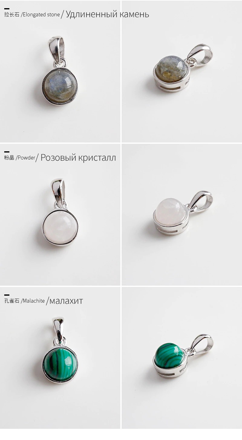 2020 Hot Real 925 Sterling Zilver Eerste Hanger Mode Charmes Natuurlijke Malachiet Labradoriet Crystal Agaat Opaal Maansteen Ketting Hangers Vrouwen voor Sieraden Maken