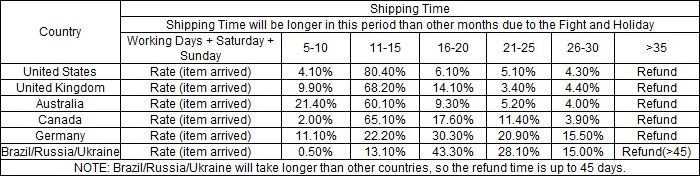 - Opmerking: china Post Air Mail/Parcel gewoon behoort wereldwijd systeem dat is veel trager dan Special Delivery. Items komt in 7-25 werkdagen aan de wereldwijde meestal. En de aankomst tijd ook afhankelijk van een aantal factoren en verschillende gebieden. De algemene aankomsttijd tabel hieronder voor uw gevolgtrekking: