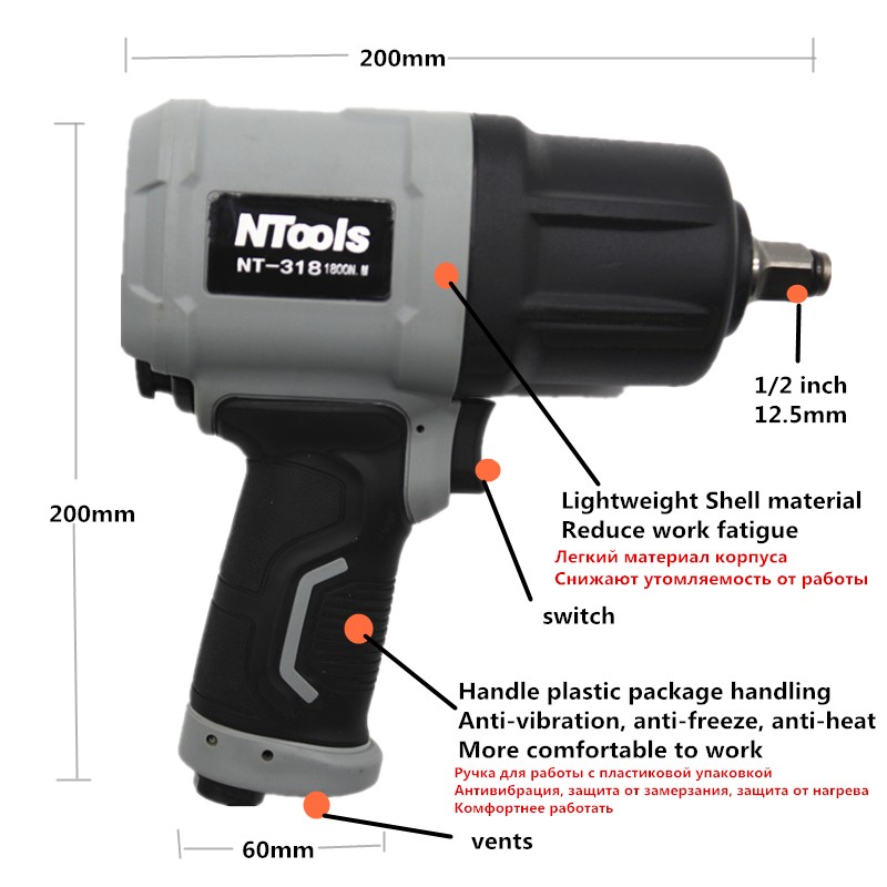 1800 Nm Air Pneumatische Wrench Tool Spanner Power Tools Band Remoual Koppel Impact Mouwen Sleutels Air Tools