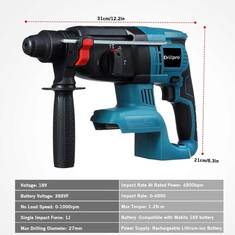 18V 4 Functies Elektrische Borstelloze Cordless Boorhamer Oplaadbare Hamer 27Mm Impact Drilll Voor 18V Makita Batterij