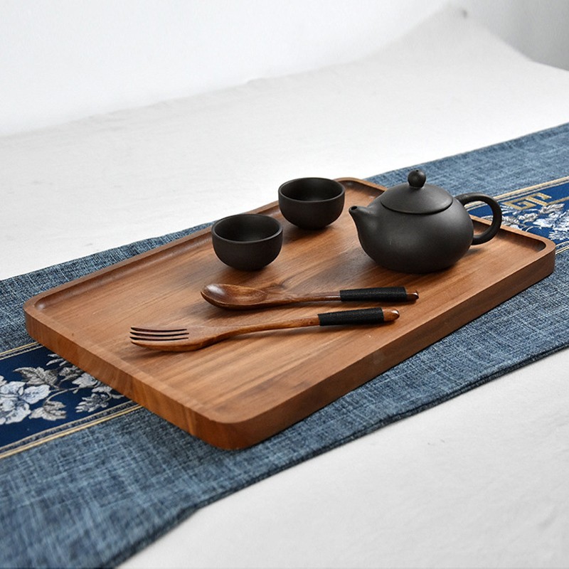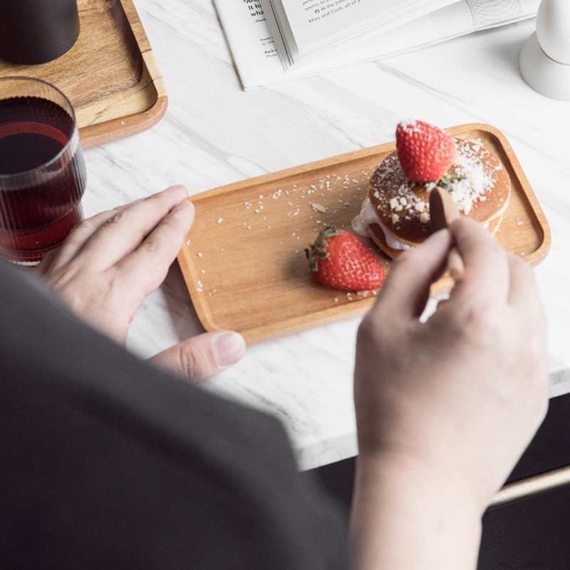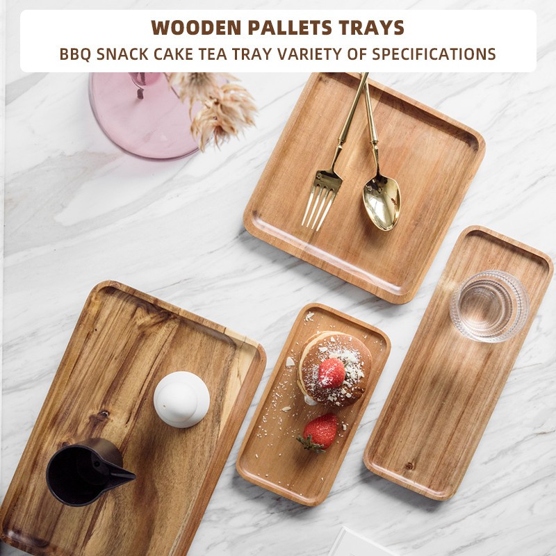 1Pc Acacia Hout Dienblad Vierkante Rechthoek Ontbijt Sushi Snack Brood Dessert Taart Plaat Met Gemakkelijk Carry Gegroefde Handvat