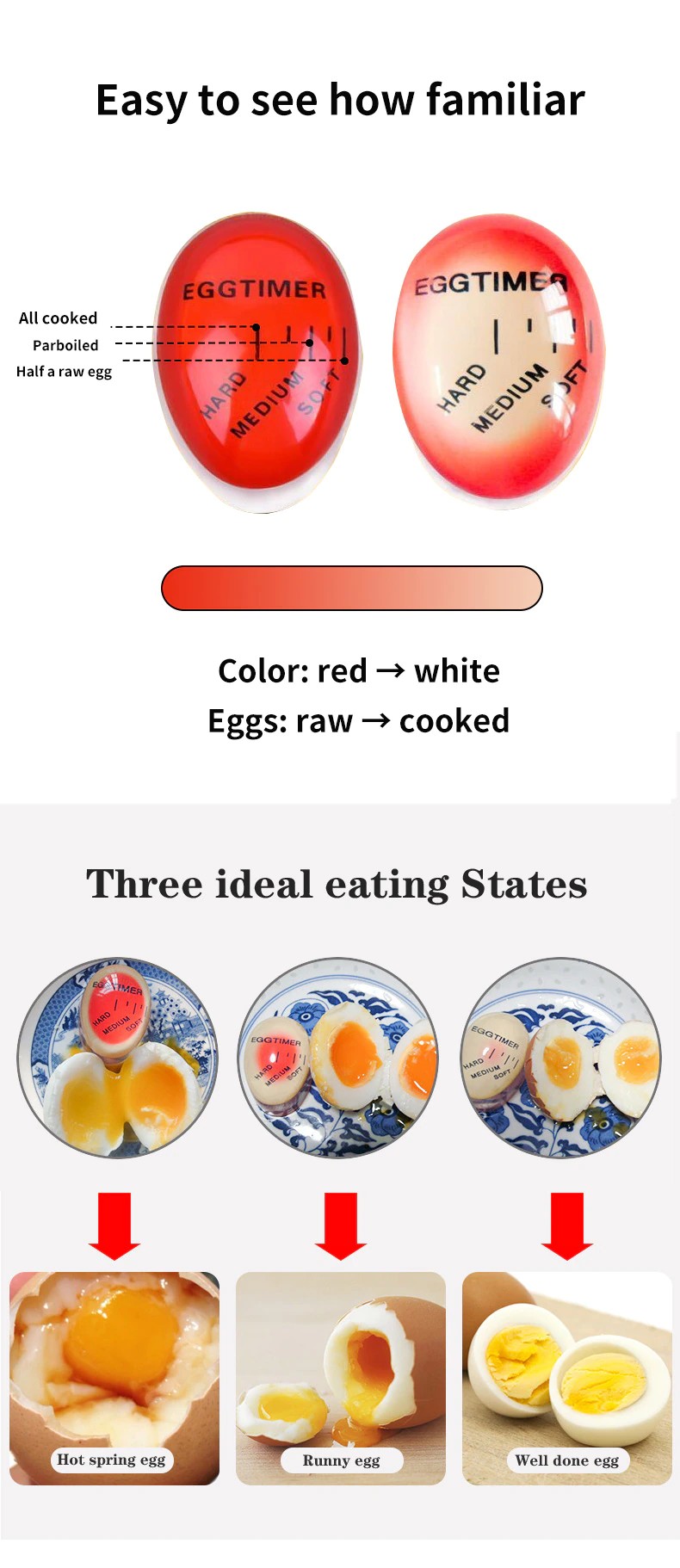 1Pcs Ei Perfecte Kleur Veranderende Timer Yummy Zachte Hardgekookte Eieren Koken Keuken Eco-Vriendelijke Hars Ei Timer Rood Timer Gereedschap