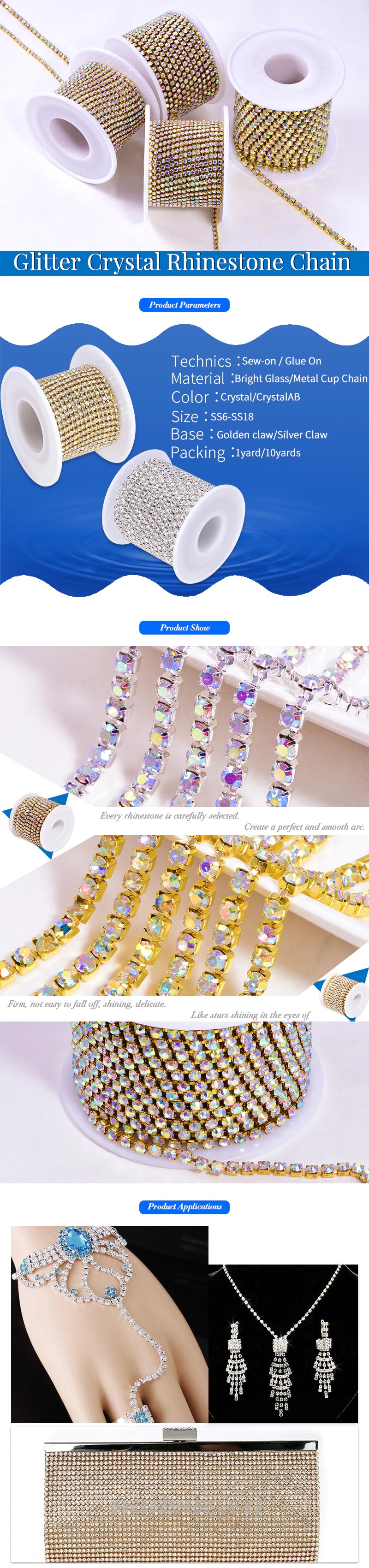 1Yard 10Yards/Roll Ss6-Ss18 Стразы Для Рукоделия Glitter Crystal Naai Rhinestones Cup Ketting Strass Trim Voor Kleding A22