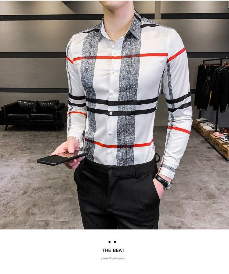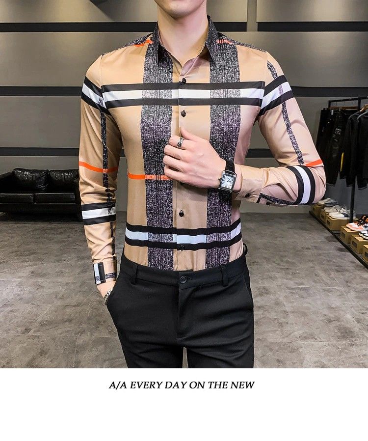 21 Kleur 6Xl Nieuwste Nieuwe Boutique Mode Gestreepte Slim Mens Casual Lange Mouwen Shirts Luxe Hawaiian Holiday Mannelijke Plaid Shirt