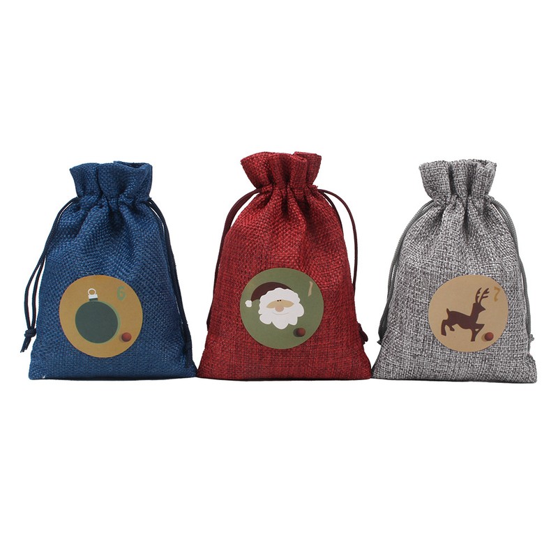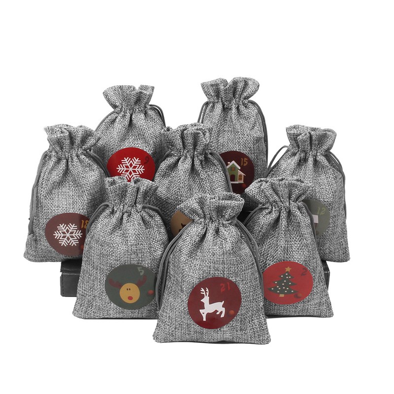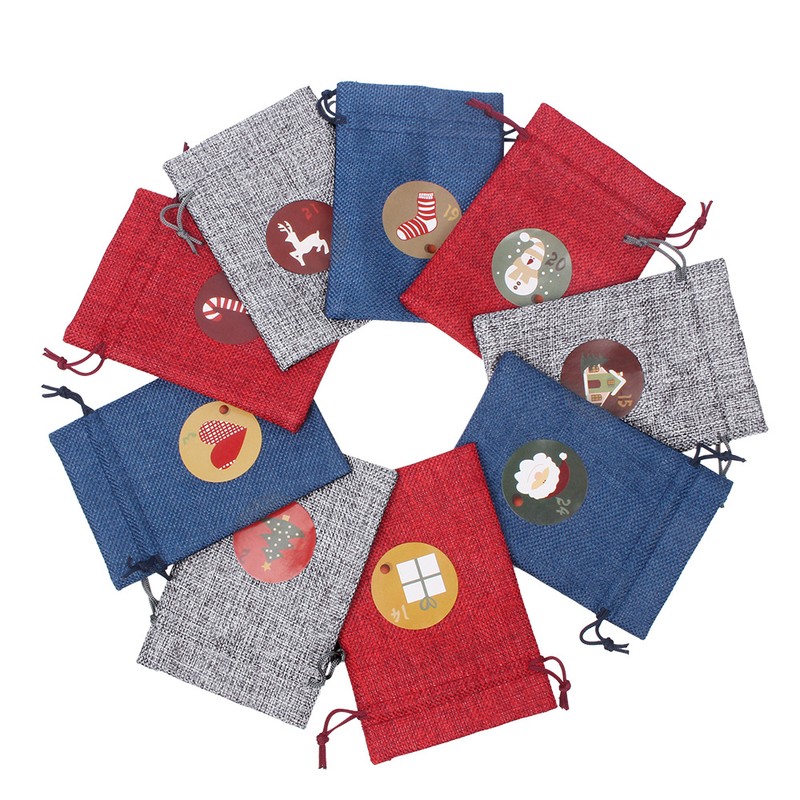 24Pcs Set Kerst Advent Kalender Countdown Jute Snoep Tas Trekkoord Linnen Bundel Pocket Diy Xmas Advent Calendrier Gift Bag