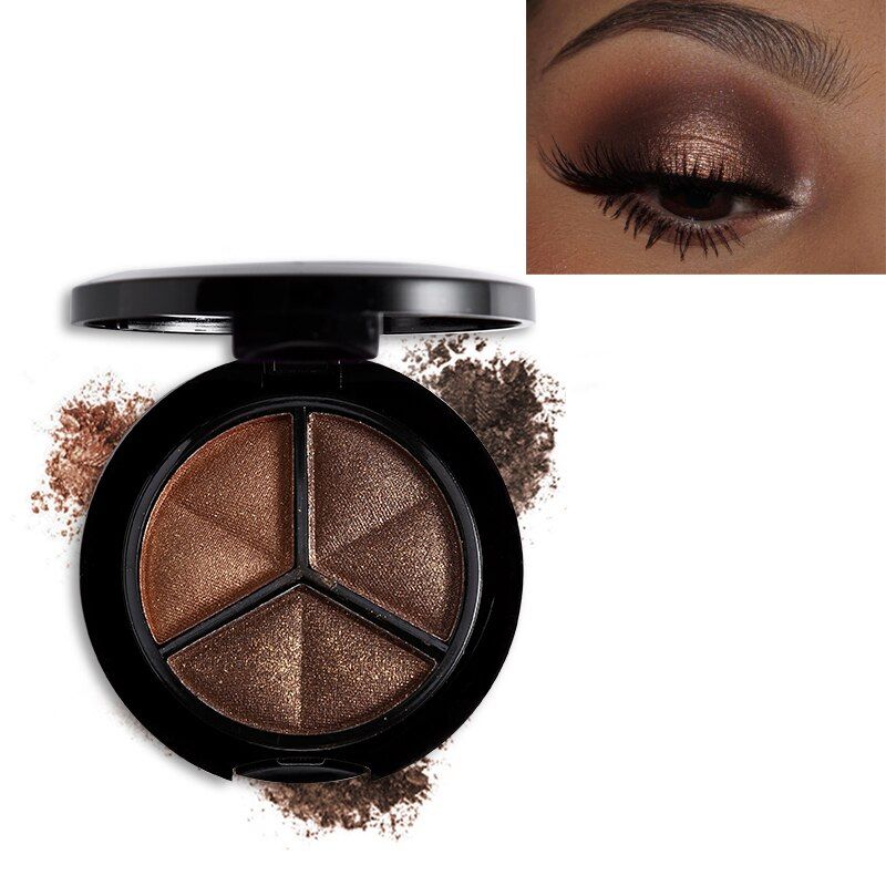 3 Kleuren Shimmer Glitter Oogschaduw Palet Make-Up Koperen Bronzer Sliver Grey Metallic Rokerige Cut Vouw Oogschaduw Naakt Cosmetica