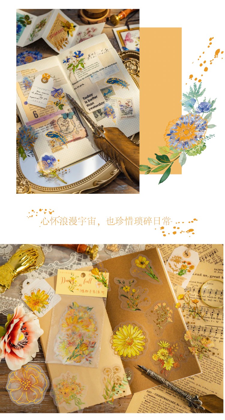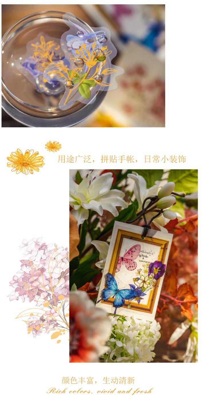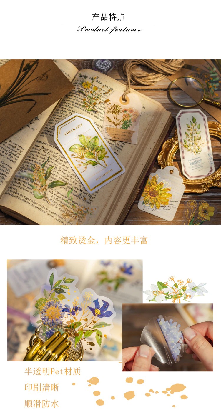 30 Stks/Pak Gouden Overzicht Hand Schilderen Kleurrijke Bloemen Materiaal Decoratie Journal Huishoudens Stickers