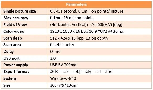 ZS1 3D Scanner parameters