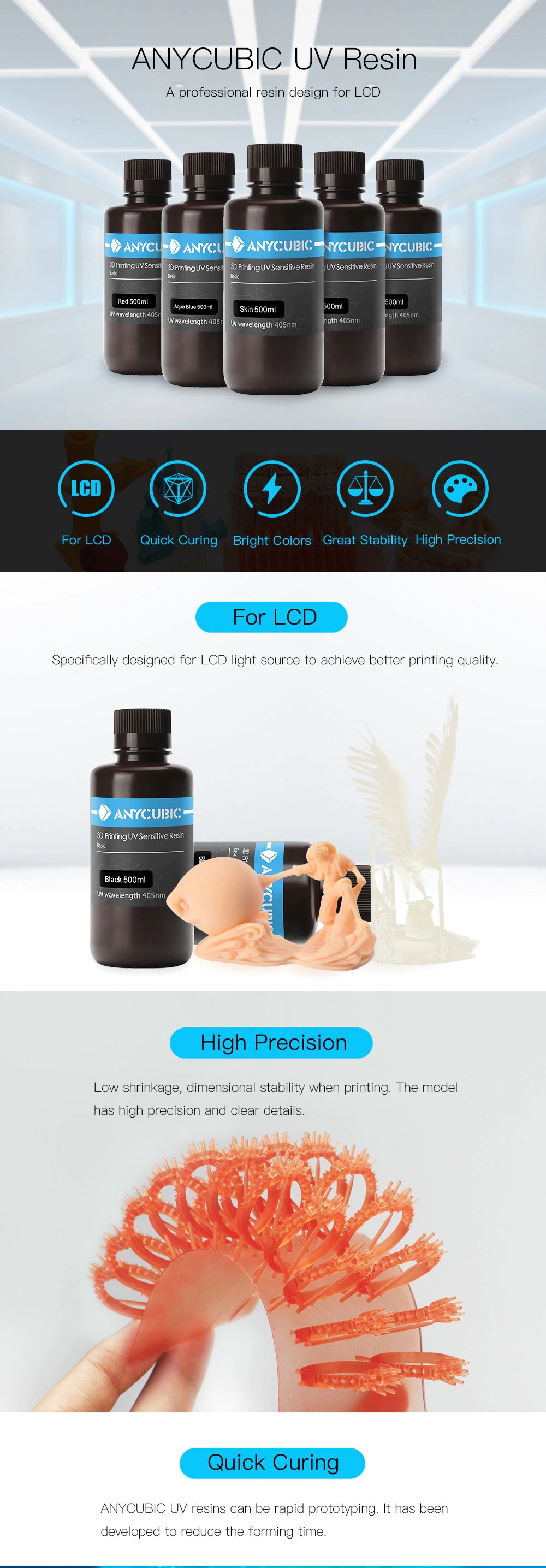 Anycubic 405Nm 1L Hars Voor Photon S Mono 3D Printer Sla Uv Gevoelige Hars Vloeibare Materialen Afdrukken Lichtgevoelige Uv Resina